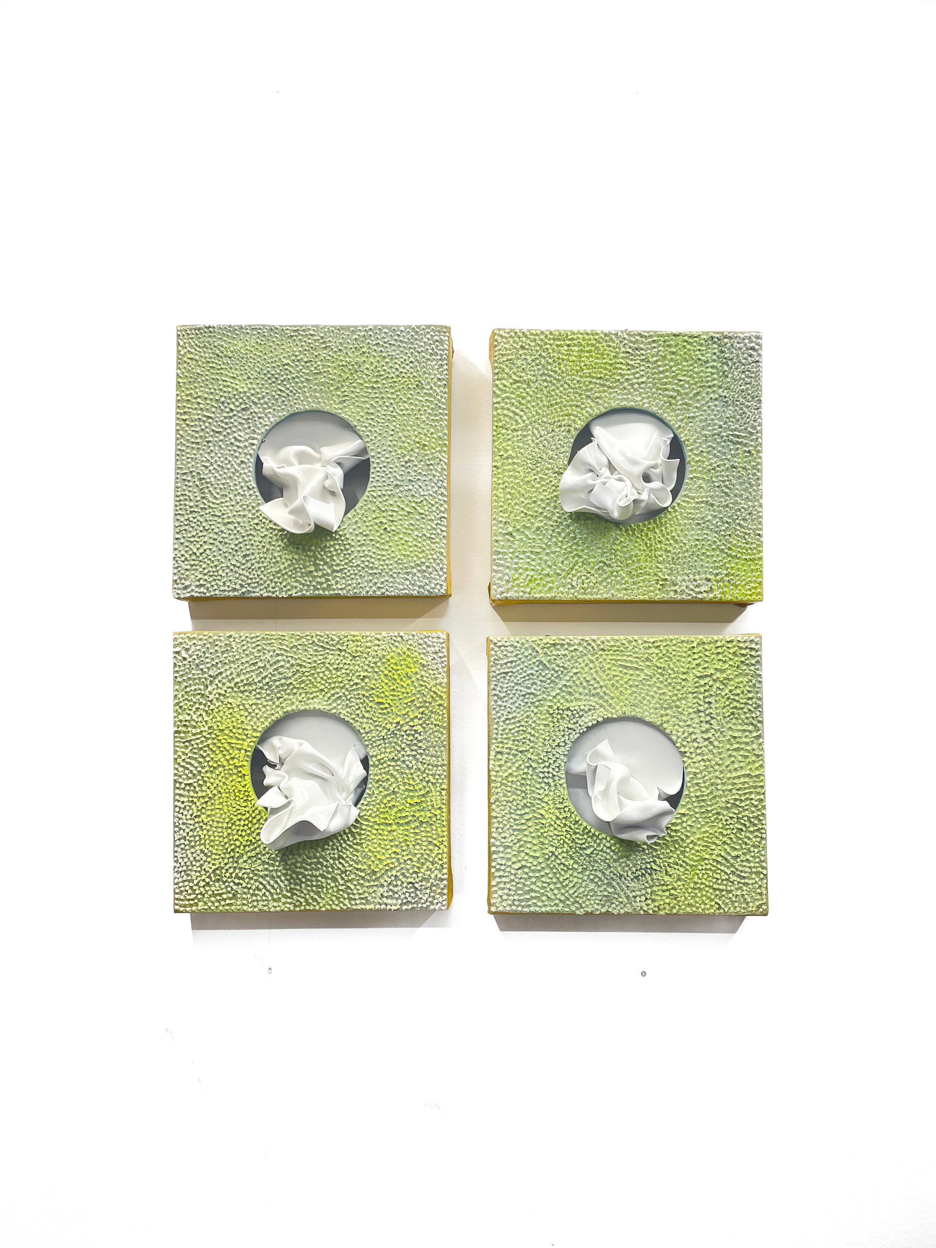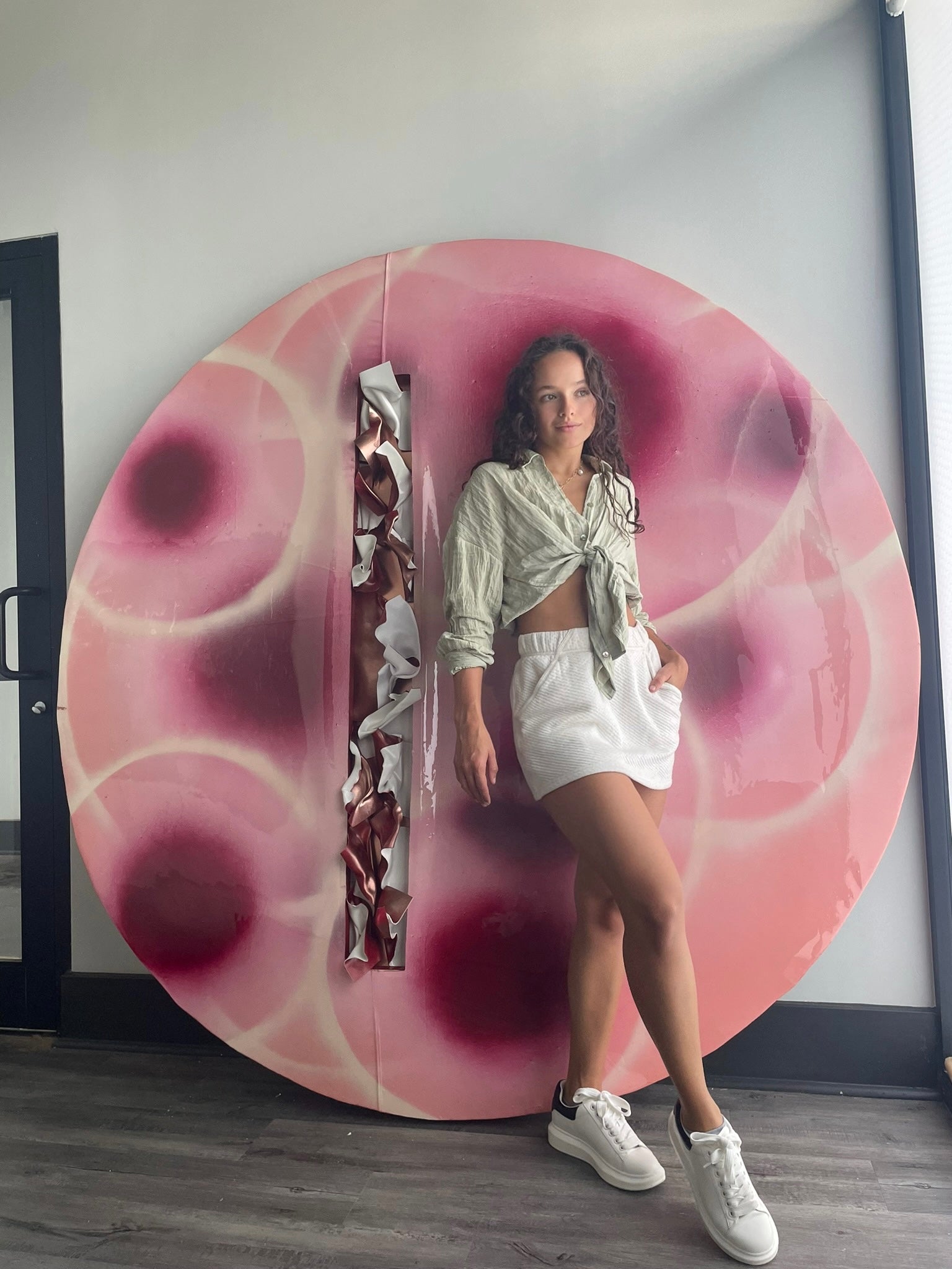 Zoe Antona, a newcomer to the Atlanta art scene. Within the last year her work has been making waves with her unique approach to traditional art practices and crossing them to create her compositions. Her non conventual work has its way into the collections of art enthusiasts and collectors in the city as her practice continues to rapidly grow.