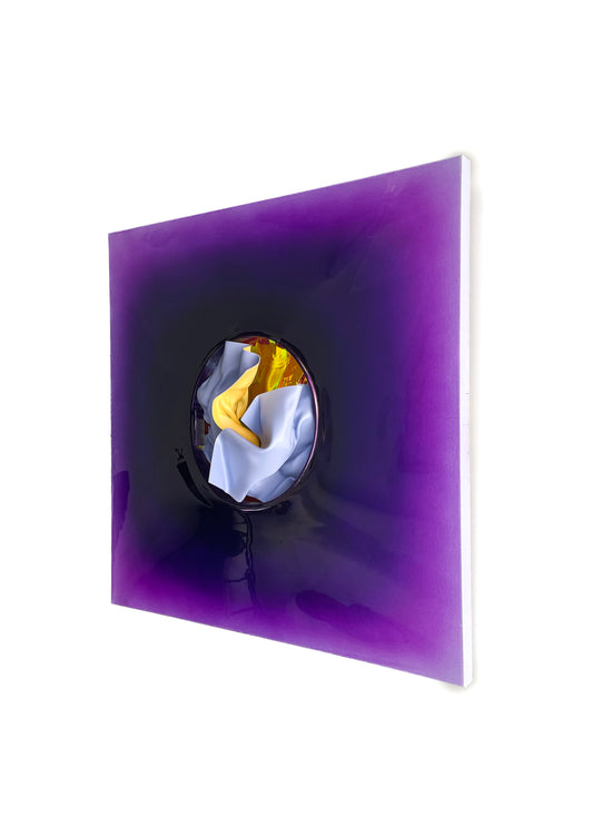 Mixed media on premium canvas and resin top coat with Plexiglass with chrome backing